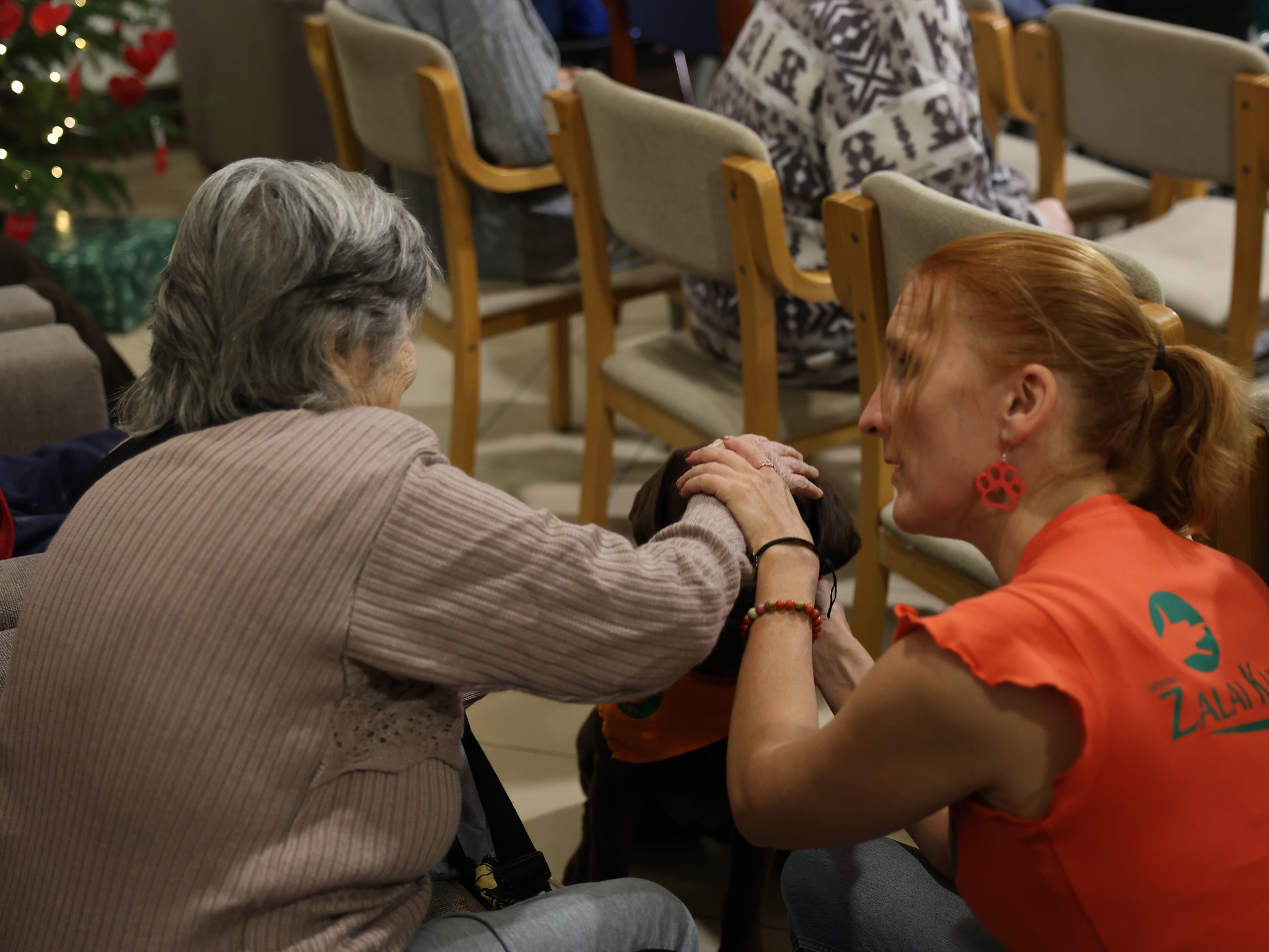 Nagy Kata a Zalai Kutyasuli terápiás kutyás programjának aktív tagja, ahol – ahogy fogalmazott – valójában Zalában az egyetlen ilyen jellegű képzés működik. A terápiás munka szigorú szakmai keretek között zajlik: az érvényes vizsgák feltétele a folyamatos, szerződéses intézményi jelenlét. A zalakomári otthon nem ismeretlen terep számára, korábban már dolgozott ott, ám egy komoly műtét miatt átmenetileg át kellett adnia a feladatot. Tavaly decemberben azonban újra visszatért, és most először látogatta meg ismét az időseket.