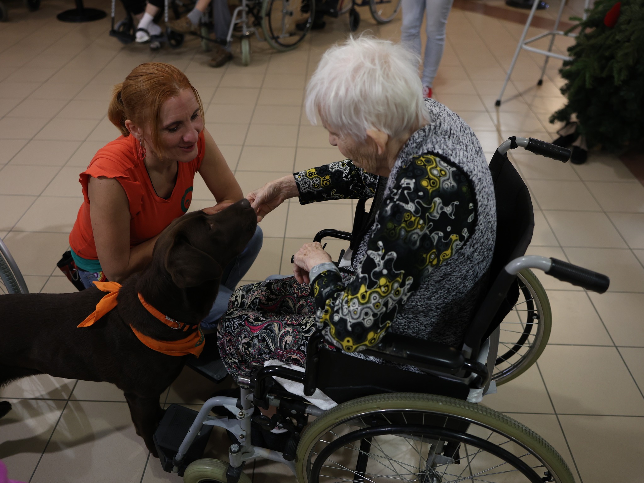 Különleges vendéget fogadott a múlt héten a zalakomári idősek otthona: Nagy Kata pedagógus, terápiás kutya felvezető és Lakshmi nevű terápiás labradorja látogatott el az intézménybe, ahol szeretettel, nyitottsággal és meghatottsággal fogadták őket. Az idősek örömmel simogatták, jutalmazták a kutyust, Lakshmi pedig pacsival, figyelmes jelenléttel és nyugodt közelséggel viszonozta a gondoskodást. A találkozás során sorra kerültek elő az emlékek: sokan meséltek egykori kutyáikról, régi élethelyzetekről, miközben a terápiás kutya csendes figyelemmel „hallgatta” a történeteket.