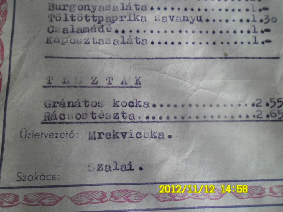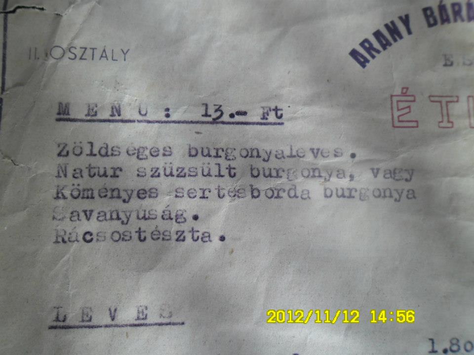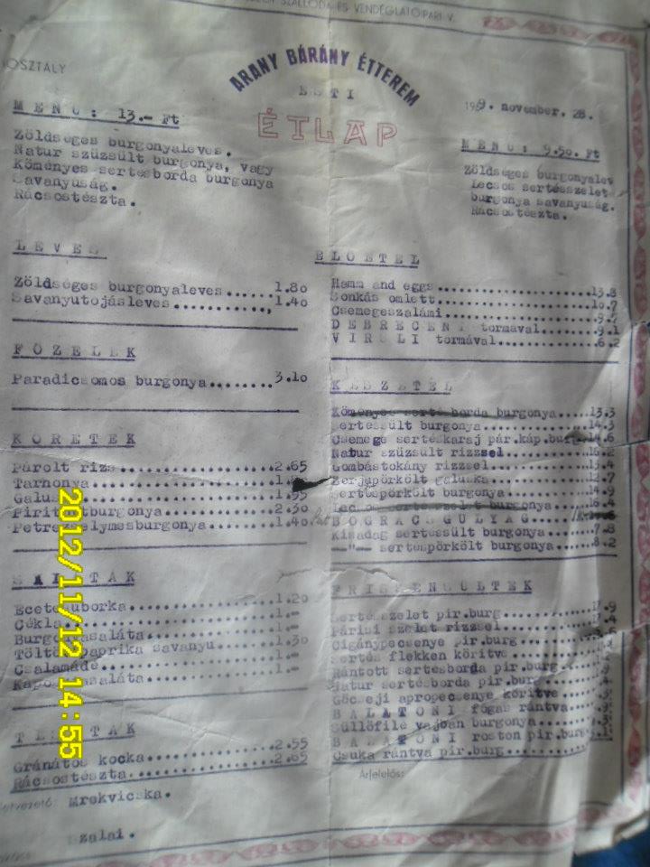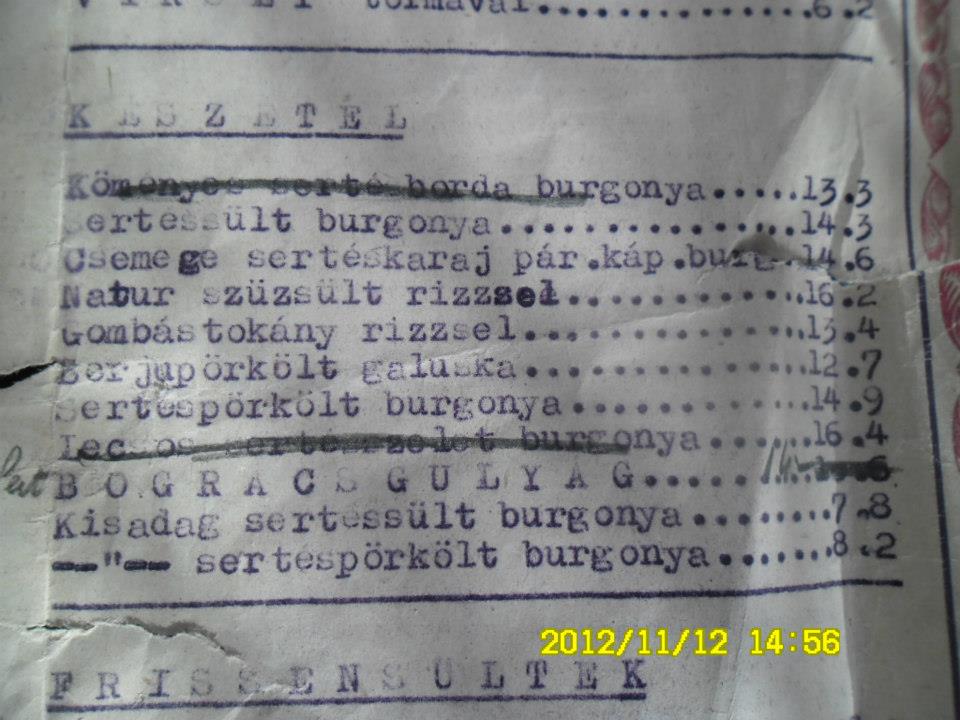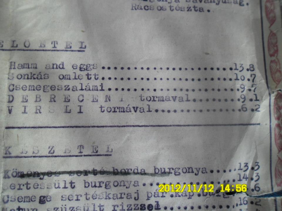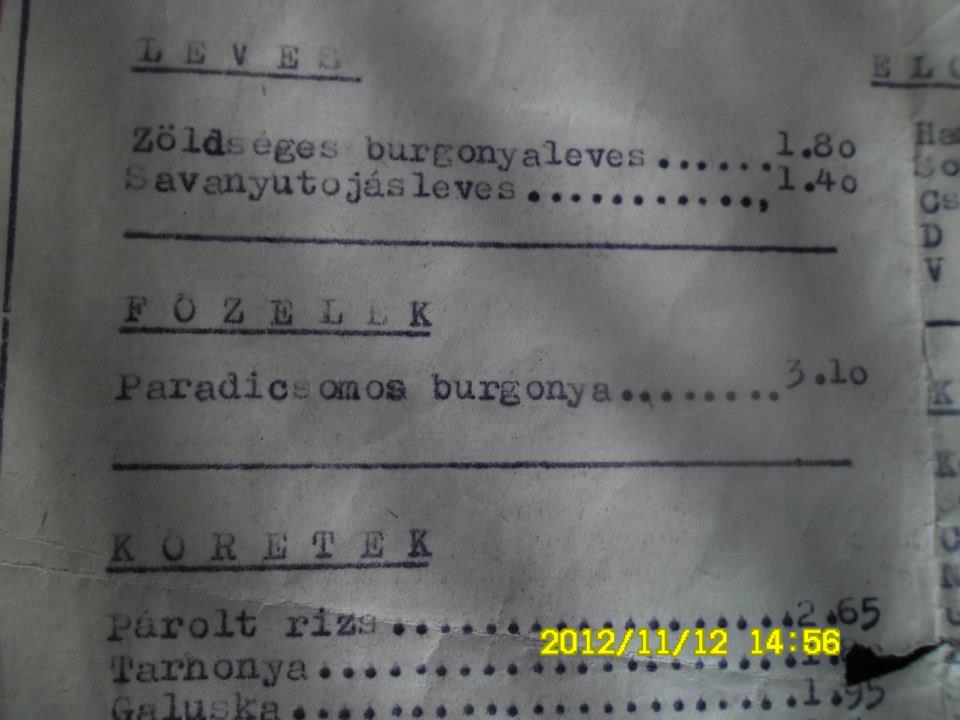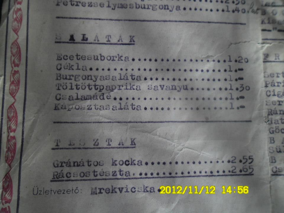 Olvasónknak, a nagykanizsai Geiszl Z. Attilának a birtokában van a szálloda éttermének étlapja 1959-ből (nagybátyja volt az igazgató akkoriban), amit a rendelkezésünkre bocsátott a cikkhez – köszönet érte!