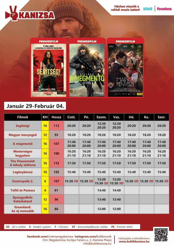 Új mozihetet kezdtünk, és a Kultik Kanizsa műsora most minden korosztályt megszólít. Legyen szó egy családi animációs kalandról, egy feszült sci-fi thrillerről vagy éppen egy őserdei kaland-vígjátékról, a kanizsai mozi termeiben garantáltan nem fogunk unatkozni január 30. és február 5. között.