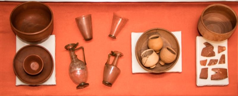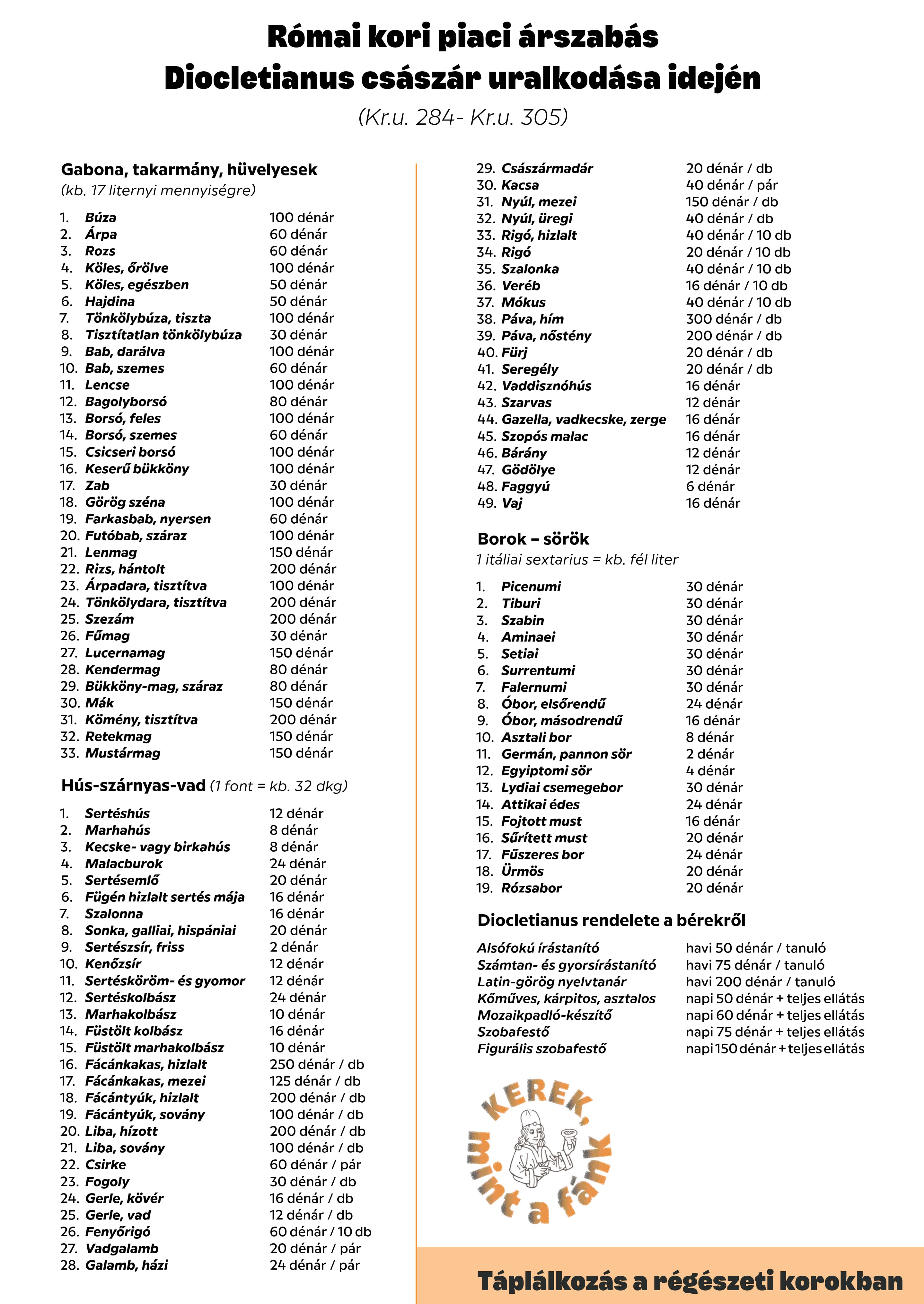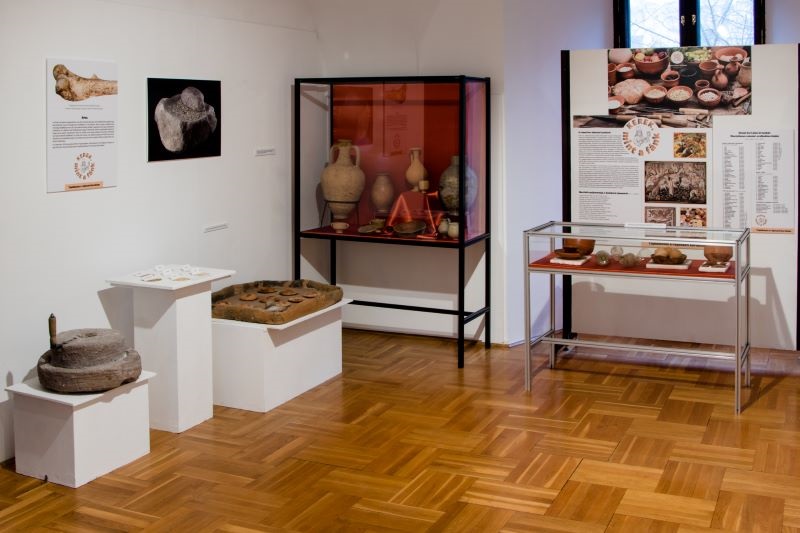 A római korszak két vitrint is kapott, bőséges magyarázó szövegekkel. A látogatók megismerhetik a lakomák világát, Martialis és Makrobius leírásai alapján, valamint Diocletianus császár ármaximalizáló rendeletét, amely részletesen szabályozta a húsok, gabonák, borok és még a hizlalt rigó vagy fácán árát is.