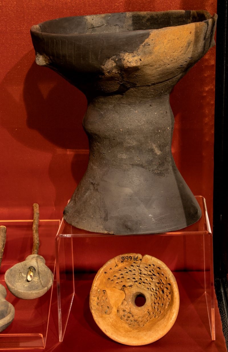A tárlat egyik ikonikus lelete egy Balatonmagyaród-Hídvégpusztán előkerült, elszenesedett ételmaradvány, amelyet a tudományos vizsgálatok alapján egy késő bronzkori, eperalapú süteményként azonosítottak.
