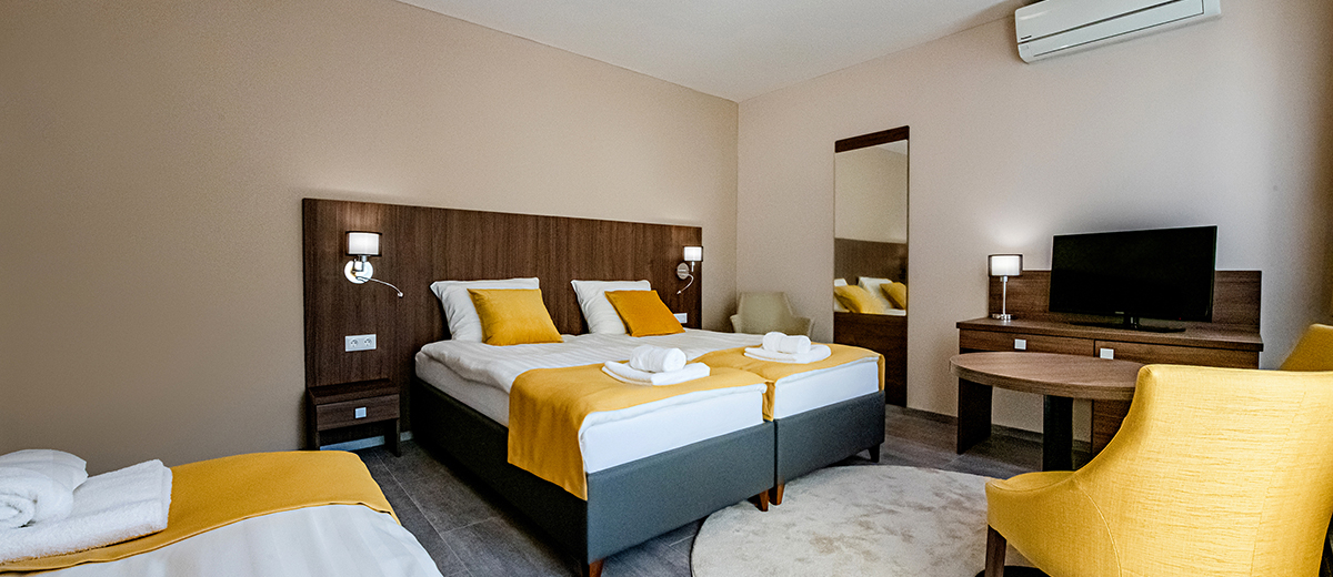 A hotelben összesen 18 szoba áll a vendégek rendelkezésére, köztük kétágyas, háromágyas és családi szobák is, így párok és családok számára egyaránt megfelelő szálláslehetőséget kínál. A szálloda egyik különlegessége, hogy a vendégek csomagajánlatai rendszerint tartalmazzák a fürdőbelépőt is, így a látogatók közvetlenül élvezhetik a Zalakarosi Fürdő gyógy- és élménymedencéit.
