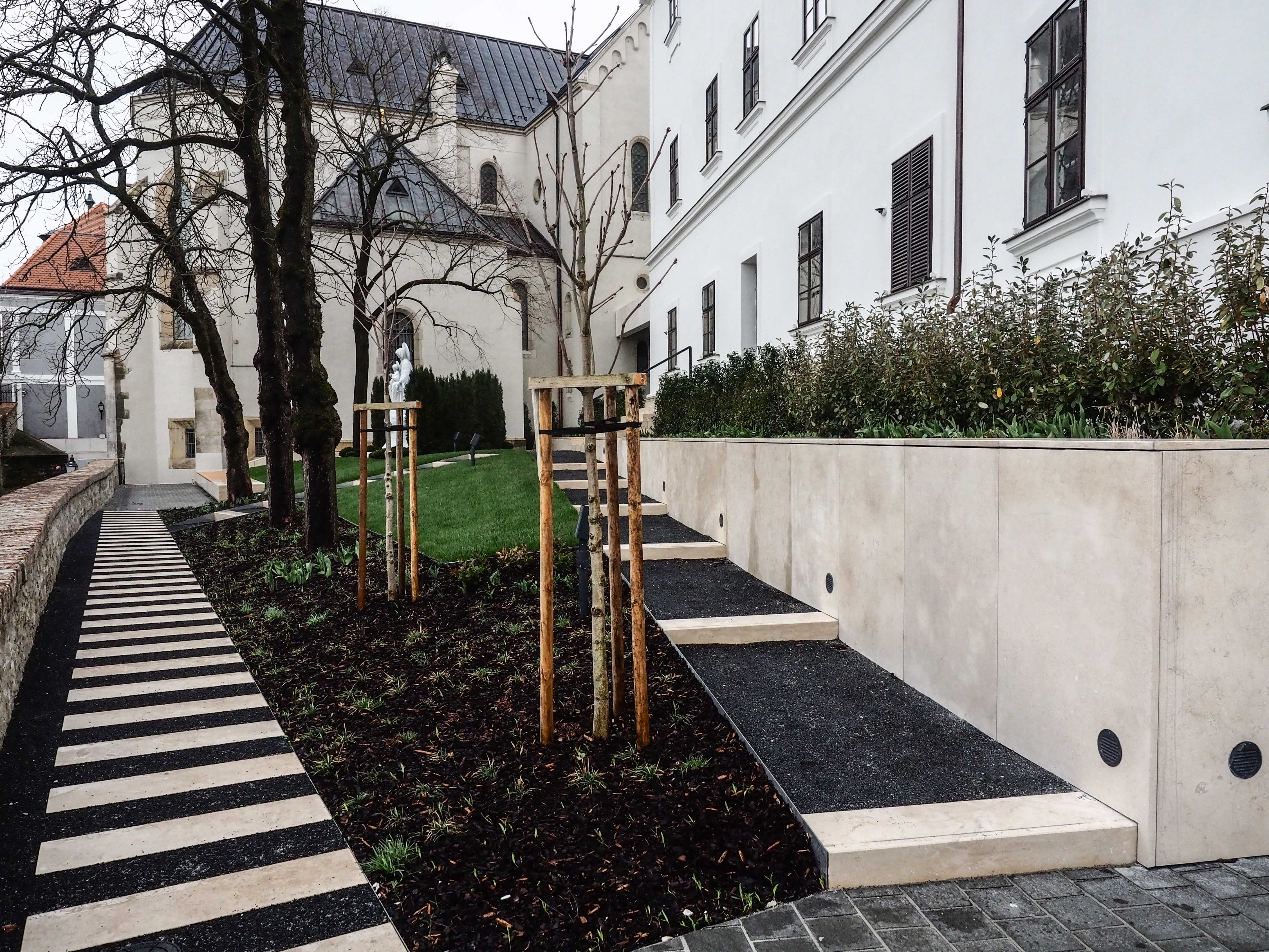 „Amennyire csak lehetett, megőriztük a várnegyed kertjeinek és udvarainak meglévő, értékesnek tekinthető faállományát, emellett 27 előnevelt fát telepítettünk. Ez elősegíti a faállomány korosztályi kiegyenlítését és egy hosszú távon fenntartható zöldstruktúra kialakítását” – magyarázza a vezető tervező.