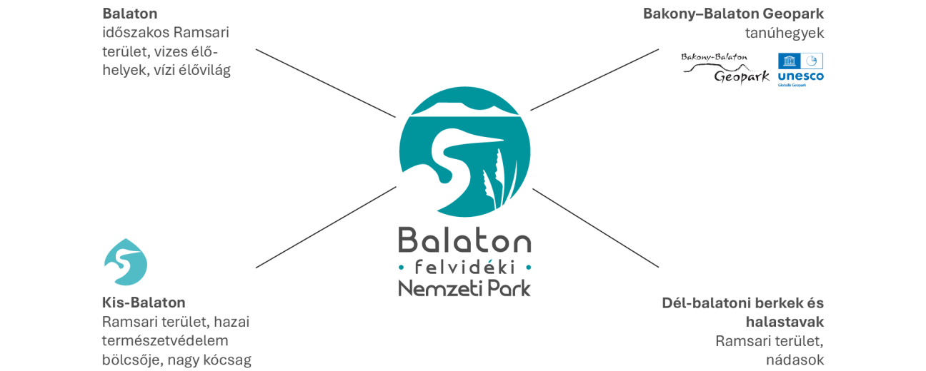 Az új embléma tudatosan épít a nemzeti park legfontosabb természeti értékeire. A logó négy meghatározó területet jelenít meg: a Balatont, a Kis-Balatont, a Dél-balatoni berkeket és halastavakat – amelyek mind Ramsari területek –, valamint a Bakony–Balaton UNESCO Geoparkot. Utóbbi esetében külön hangsúlyt kapnak a Balaton-felvidék ikonikus tanúhegyei, amelyek a térség földtani és tájképi arculatának meghatározó elemei.